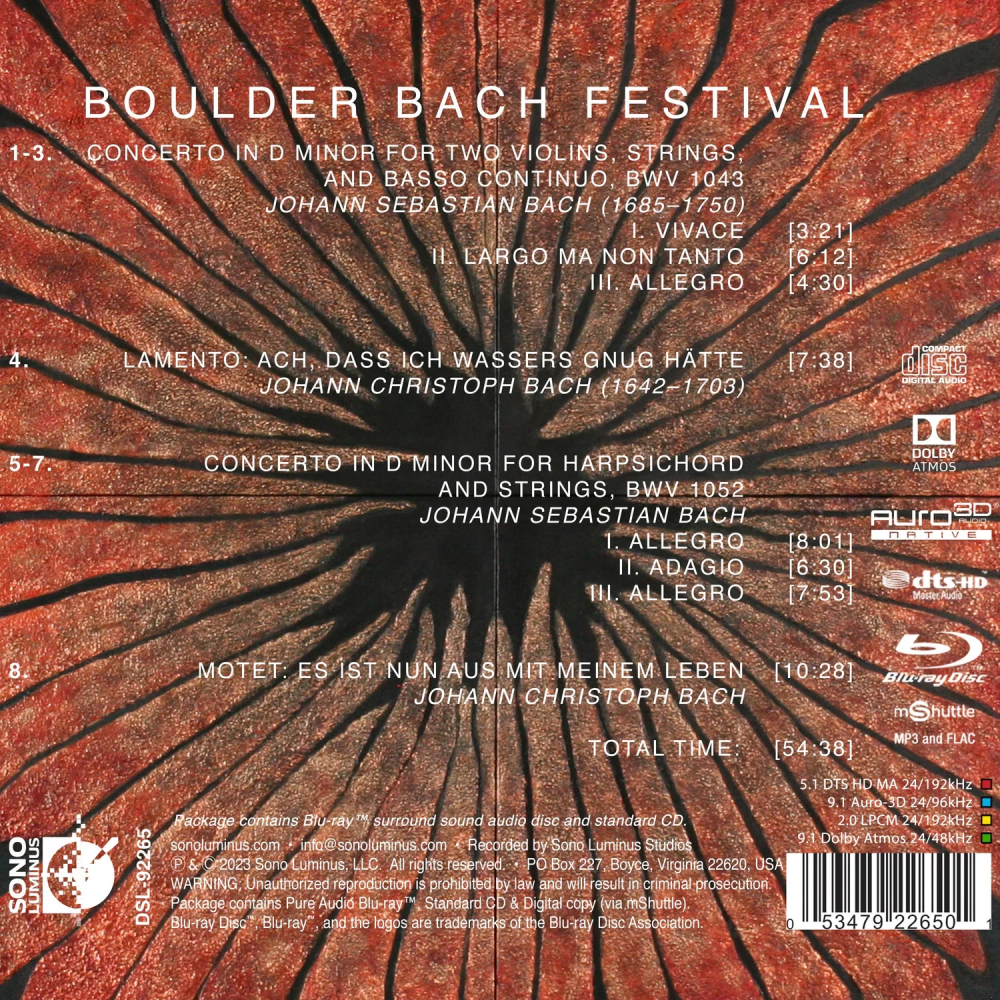 Detta album är kulmen på ett oerhört fruktbart konstnärligt samarbete som ägde rum på Boulder Bach Festival 2022 i Boulder, Colorado. Inspelningarna gjordes omedelbart efter att de offentliga konserterna avslutats. De dokumenterar fyra av de många minnesvärda musikaliska tolkningarna på festivalen. Även om musiker samlades i Boulder från hela världen hade festivalen också flera anmärkningsvärda lokala artister. Hela projektet ägde rum mot bakgrund av några av världens mest majestätiska naturscener.